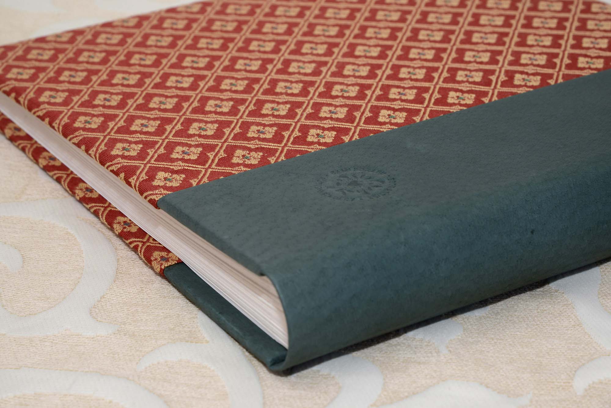 אלבום חתונה שידרה מעור ירוק ובד אנגלי, עם דפים לבנים נוצצים