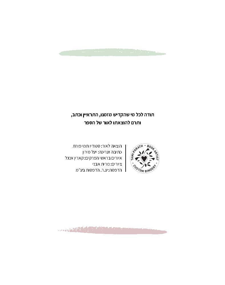 אני מודה מקרב לב להורים, ענת ובני שהיו מעורבים בכל שלב של התהליך והדעה שלהם היא שעזרה להוציא את הספר באיכות ובצורה שהוא נראה היום.