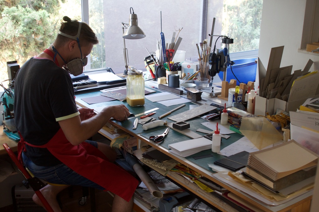 חומרים חדשים הם אושר אמיתי. בדי ריפוד שקניתי לכריכות אלבומים, ניירות שמייבאים מהחנות הכי גדולה בעולם למוצרי כריכה, חומרי בד ממשי מיפן – חומרים חדשים הם הלחם וחמאה שלנו, מפרים את הדמיון ומשמחים כל מילימטר בנשמה.