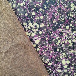 אחרי החגיגה הזאת הלכתי לחנות בדים וחיפשתי מה יכול להתאים בין החומרים לאוגדנים ואלבום שצריך להיות איתם באותה חבילה. הבדים הם סיפור ארוך – יש מאות אופציות: עובי שונה, צבעים ודוגמאות אין סופיות. הבדים שאני משתמשת צריכים להיות בעובי מסויים – לא דקים מידי שהדבק לא יעבור דרכם ולא עבים מידי כדי שאפשר יהיה לקפל בפינות את הבד.