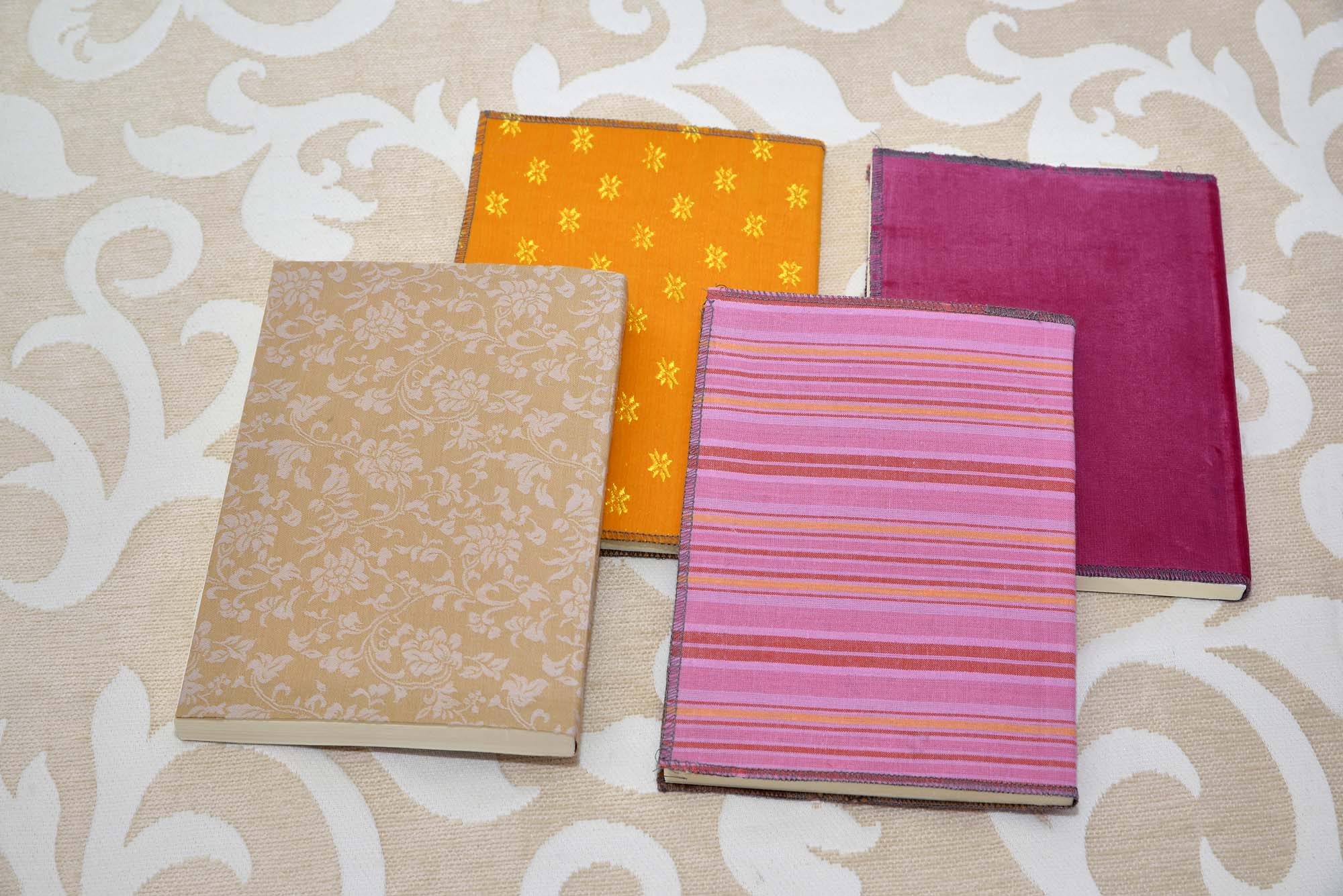 הכריכה של כל מחברת שונה – כולם מחופות בבדים צבעוניים שנותנים אופי אישי ומיוחד לכל מחברת.