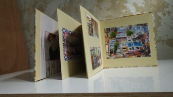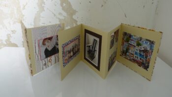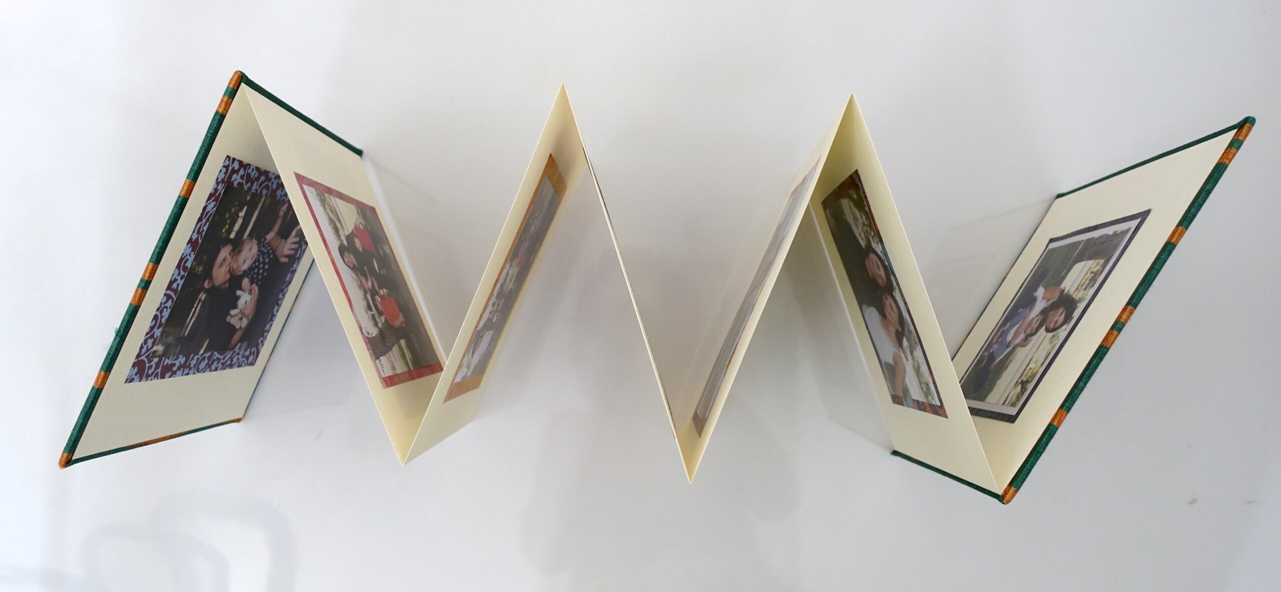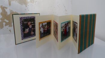 לקבל מתנה אקורדיון מעוצב עם תמונות מודבקות זה באמת כיף! באקורדיון נכנסות 12 תמונות, 6 מכל צד. הדבקת התמונות מתבצעת כשהאקורדיון פתוח – וכל 2 תמונות הן כמו כפולה. אפשר לדפדף באקורדיון משני הצדדים שלו – אין חזית או גב, הוא נפתח ומספר סיפור שונה מכל כיוון שמדפדפים. אני מדביקה את התמונות באקורדיון עם רקע צבעוני כדי לתת עומק לתמונות, ולעצב את התמונות עם צבעים נוספים. אפשר לשלב תמונות עם ברכות כמתנה ליום הולדת להורים או חברים.