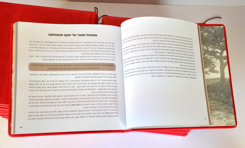 הספר הודפס ב-15 עותקים לכל בית אב ולכל נכד במשפחה. את הספרים כרכתי בעור אדום לפי בקשתה המפורשת של גב' לוטה. היא לא משאירה דברים סתומים: ידענו גם איזה גוון אדום היא מעדיפה.