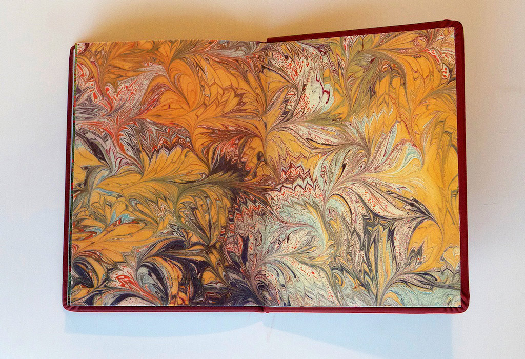 מבחינה טכנית הייתי צריכה להשוות את האושר שבסיפור לעושר בעיצוב הגרפי ובחומרים שמהם אכין את הספר. וכך עשיתי. כרכתי את הספר הקטן והמיוחד הזה בעור אדום עמוק כמו צבע יין משובח השתמשתי בניר פרגמנט מיוחד שלפני שנים הבאתי מצרפת ושמרתי בדיוק למטרות מיוחדות כמו זאת. ניר צבעוני שדורש דבק מיוחד כי השקיפות שלו מקשה על העבודה הרגילה. הניר שעליו הדפסתי את הספר הוא פנינה כסוף שבעיניי משדר רכות והברק שלו נוצץ – כמו הסיפור עצמו. השתמשתי בכמה פרגמנטים בתוך הספר והדפסתי עליהם הגיגים, בצבעים מיוחדים.