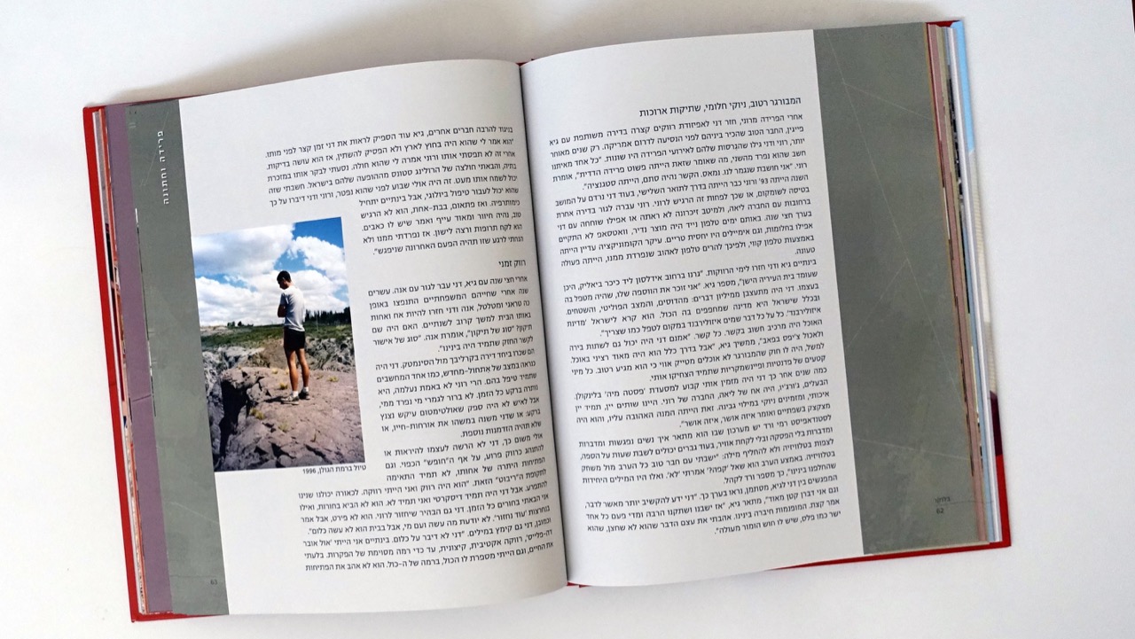 בספר הזה החלטתי לעבוד עם מעצבת גרפית שתוכל לעבוד איתי צמוד ואינטנסיבי כדי לספק את הספרים ליום השנה השני למותו של דניאל. הלו״ז היה לחוץ. יהודית רווח מסורה לחומר, לעבודה, סקרנית ותמיד פנויה להקשבה. הכל חשוב לה כמו לי וזה מסביר כמה נעים לעבוד כך: הצבעוניות, גודל הפונט ועימוד הטקסט, העניין והגדלים המשתנים של התמונות – כל אלו משולבים יחד ליצור ספר מושלם לסיפור שלנו.