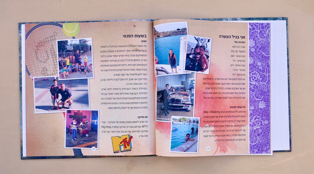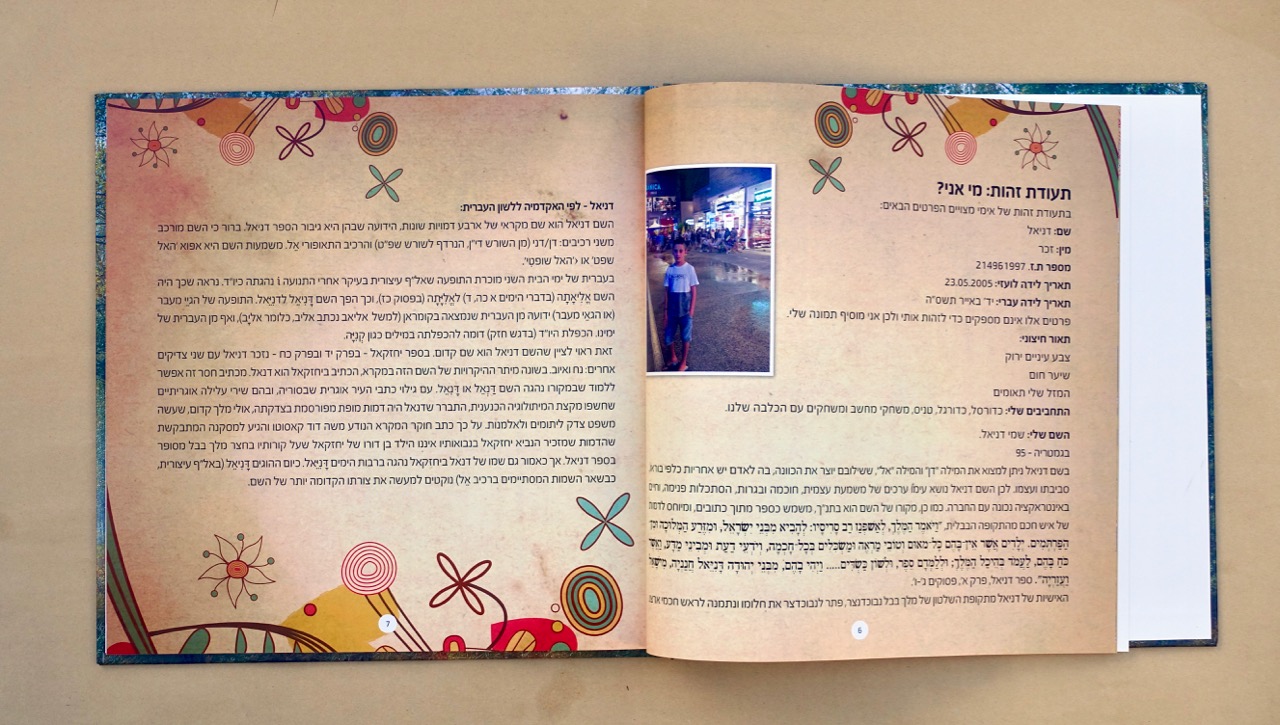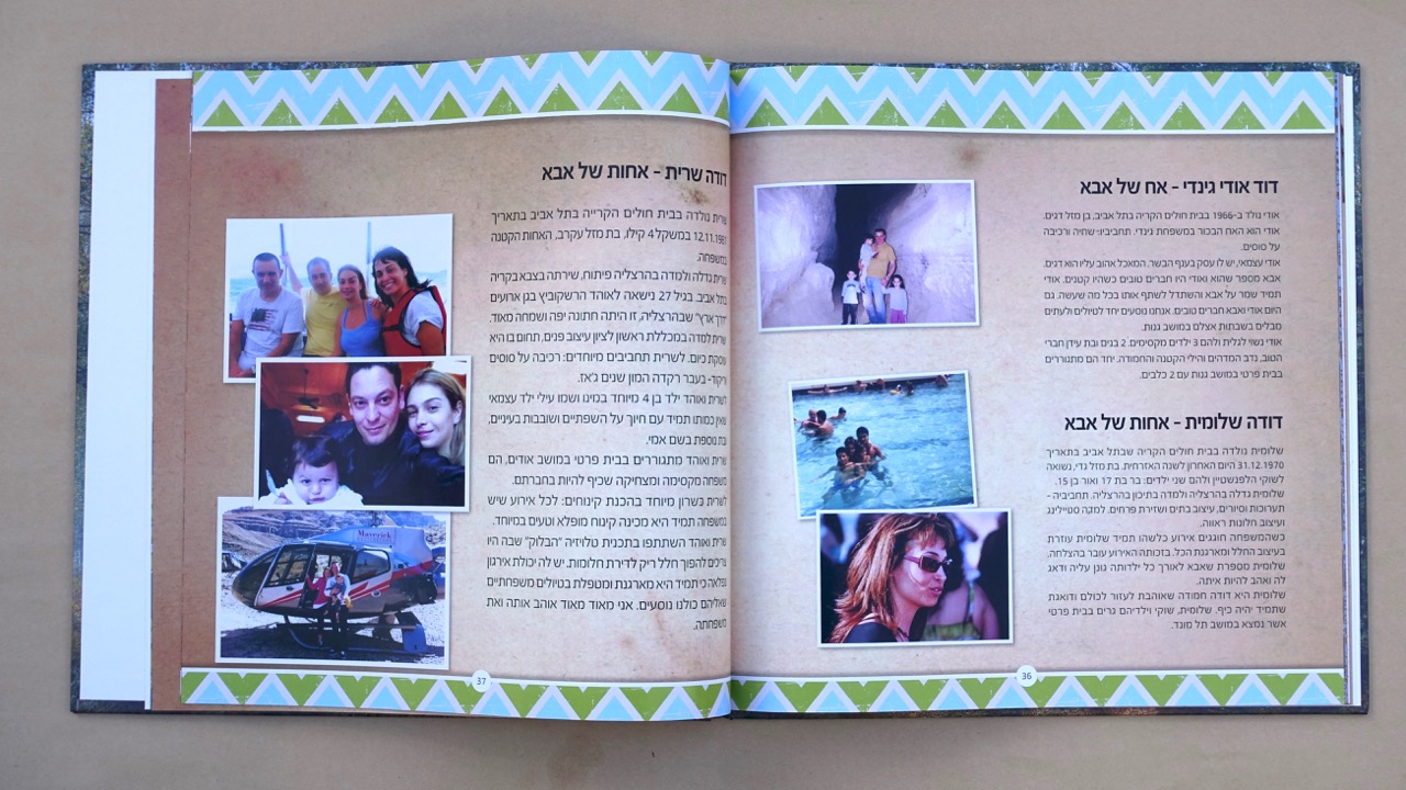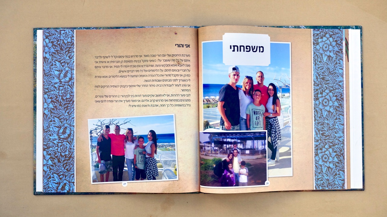 כשהחומר גלם מוכן – הטקסטים, הלינקים למסע העליה ארצה, עץ המשפחה, תמונות – כשכל זה מוכן באים אלי עם החומר. אנחנו מתחילים להעמיד את כל החומר בתוכנה הגרפית שלנו. כל עבודת שורשים שונה מהשניה – משפחה אחת מעדיפה צבעוניות שונה ממשפחה אחרת שמעוניינת בתשומת לב על הטקסטים יותר. כל עבודה נראית אחרת לפי סיפור המשפחה ולפי טעם התלמיד.