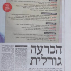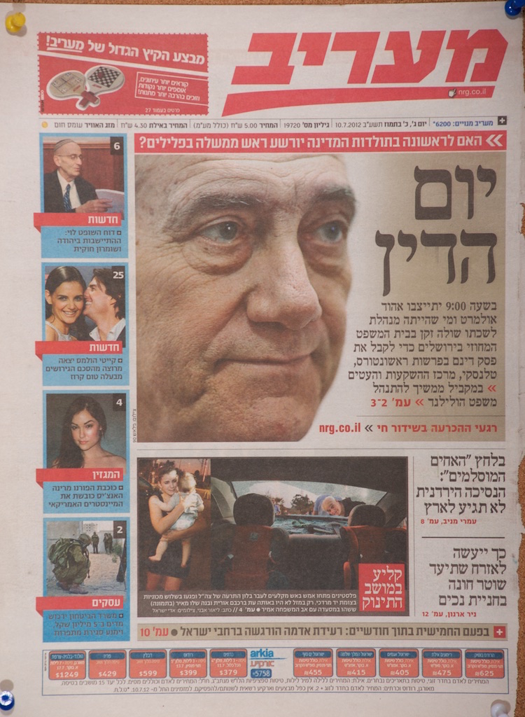 צילום קטעי עיתונות הוא עבודה סיציפית – מצד אחד אני רוצה לסיים את העבודה, כבר חודש וחצי אני מצלמת קטעי עיתונות שנאספו לאורך 5 שנים, מצד שני אני מכורה לקריאה, ואקטואליה ידועה כדבר הכי קל לקריאה – התחברות מיידית. בכל עיתון צריך לחפש קודם את הקטע הרלוונטי ואז להצמידו לקיר הכי ישר שאפשר ולצלם. התאורה כבר מכוונת ו-הופ – לכתבה הבאה.