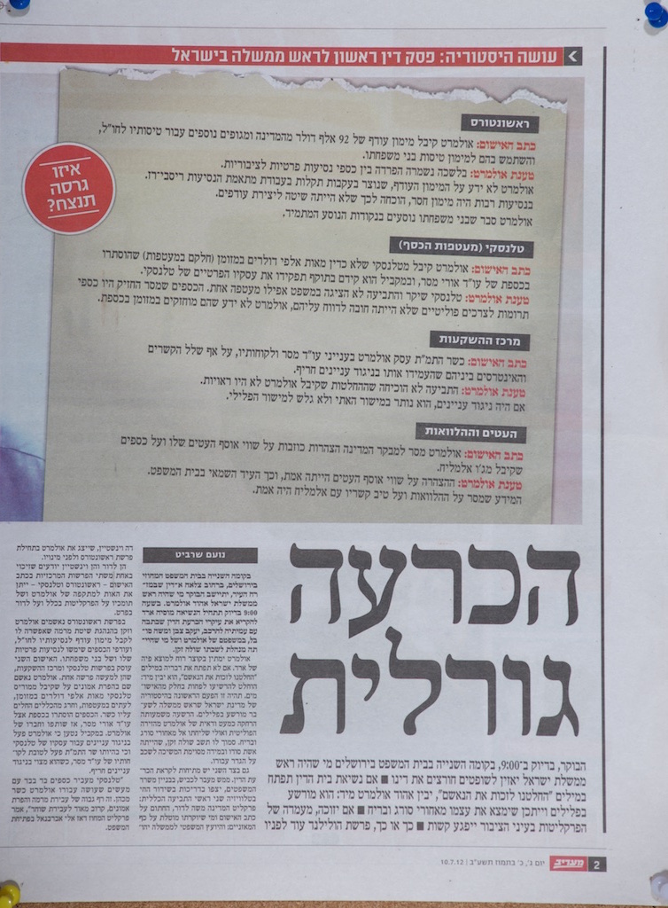 קטעי העיתונות גוזלים זמן, מלכלכים את הידיים ואת כל המישטחים שאיתם הם באים במגע אבל לא חשוב כמה הם מלכלכים אני מכורה אליהם וקשה שלא לקרוא שוב ושוב כל כתבה. בסופו של דבר אני זקוקה רק לחלקים מהעיתונים האלו, הספר שאני מכינה הוא עבור עו״ד שמוזכר ברוב הכתבות האקטואליות, בכל העיתונים היומיים או החודשיים ובספר שאנחנו מעצבים יהיו שזורים כל המאורעות בארץ בשנים האלו, מטבע הדברים.