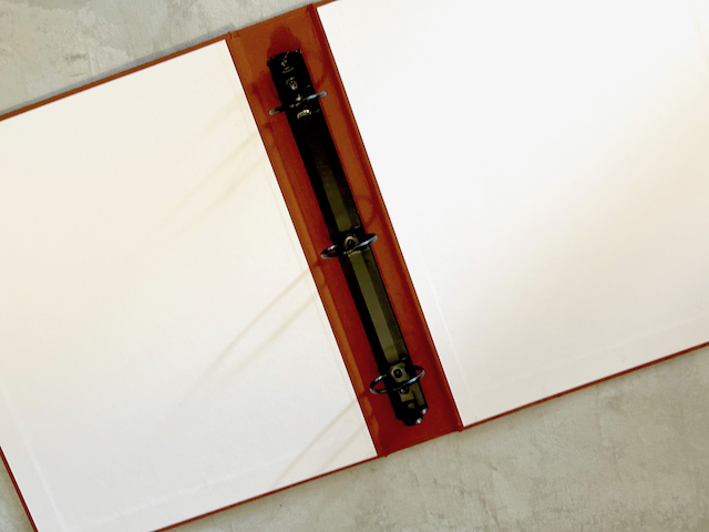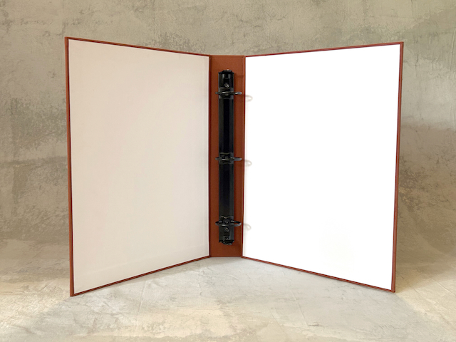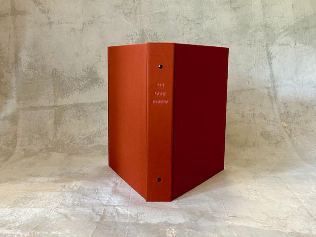 קטעי עיתונות יש על דוד המון! עשרות רבות. אולי מאות. אישתו הזמינה אצלי 5 קלסרים כדי שנשמור את קטעי העיתונות לנכדים שלו שיום אחד ישאלו עליו. את הקלסרים תכננתי בגודל של שמינית גליון כדי שיהיה מדוייק לכתבות גדולות ויהיה קל לקפל. את המנגנון הזמנתי מניו יורק מ TALAS, כולל את הברגים ומכשיר מיוחד שאמור להיות כמו פטיש שנועץ אותם בתוך הקרטון. הבד שעוטף את הקלסר בצבע חמרה ייבאתי מגרמניה לספרים שכרכתי בזמנו.
