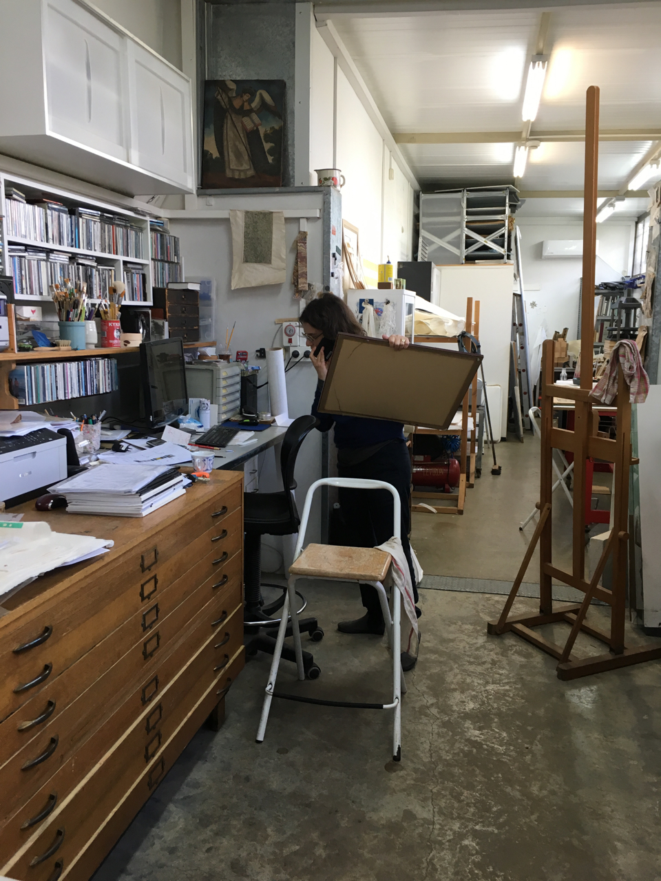 הגעתי עם גידי לנועה עם 2 יצירות אמנות כדי להחיותן מחדש: שימור נייר אמנותי ו-רסטורציה של יצירות אמנות בסטודיו ברשפון של מקמנוס שימור נייר mcmanus paper conservation זה מקום קסום, בחצר פנימית בין בתים. באווירה כזאת עושים אמנות.