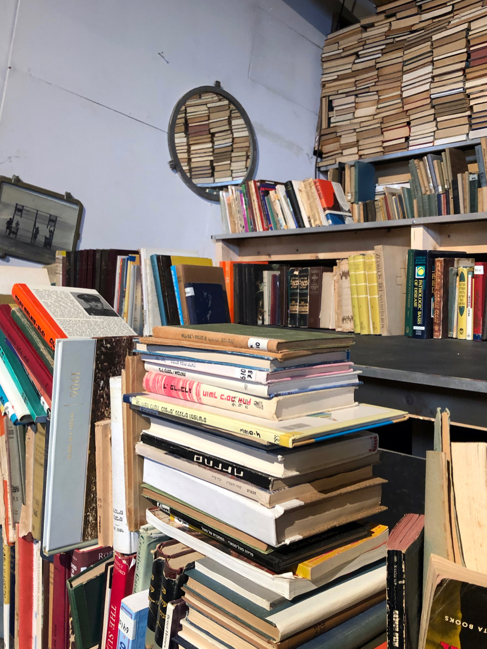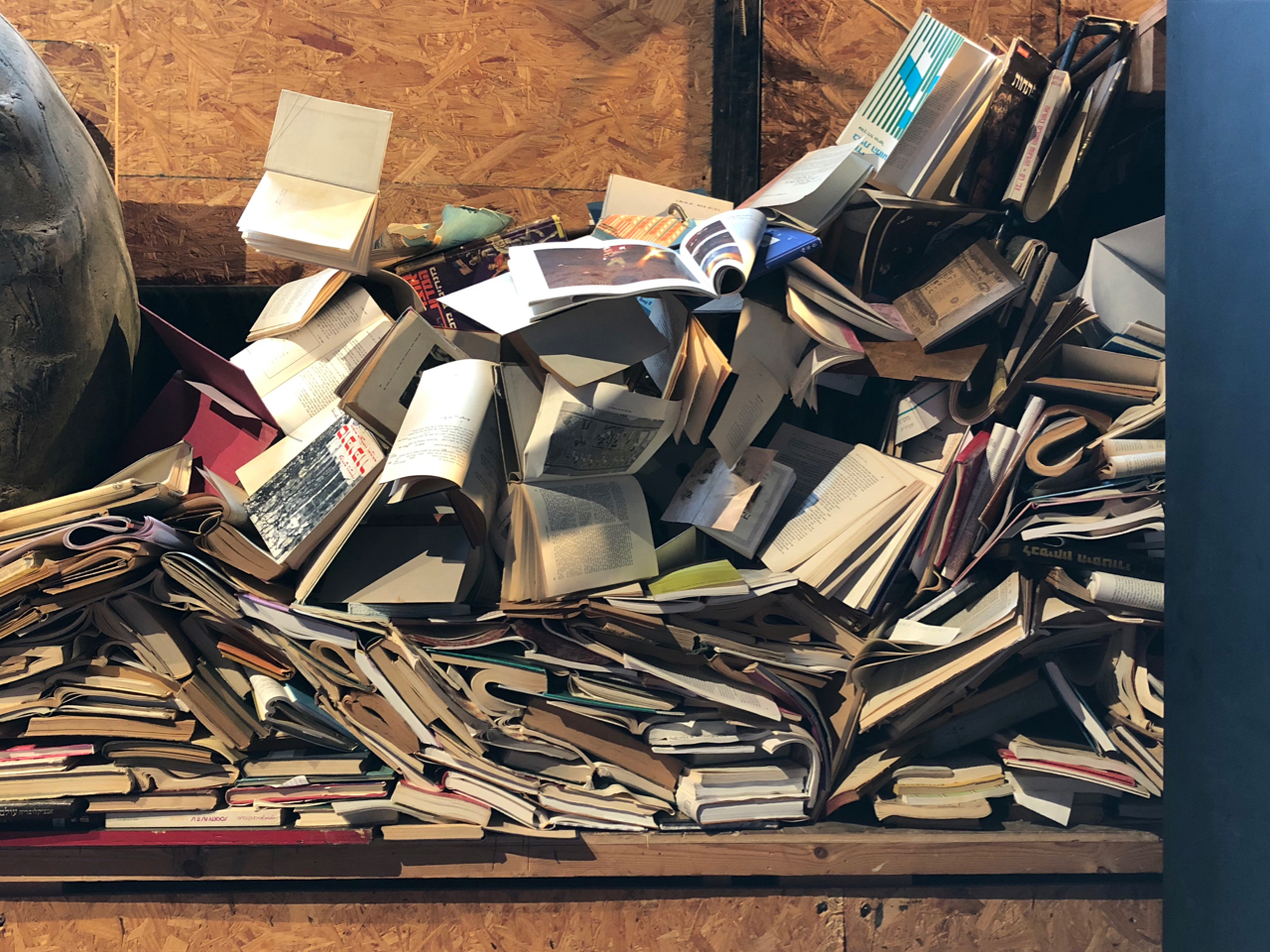 בתערוכת ספרים בבית נקופה בסטודיו המסקרן של קבוצת זיק ראיתי משחקי ספרים ותצוגה יצירתית ומעניינת. הספריה של קיבוץ הראל התפרקה ומאות הספרים חולקו בין אנשים פרטיים באזור, קבוצת זיק – אספה את כל מה שנותר מהספריה והשאר נשלח לגריסה. זה מה שעושים עם ספרים שאין להם בית. באנו לראות את התערוכה וקיבלנו השראה מהאומנות והיצירתיות של קבוצת זיק למרות שלא יכולתי שלא לכאוב את גורלם של הספרים היתומים שנגרסו.